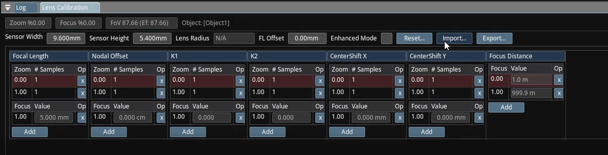 In the "Lens Calibration" panel that just opened, click on "Import..." and select your lens file