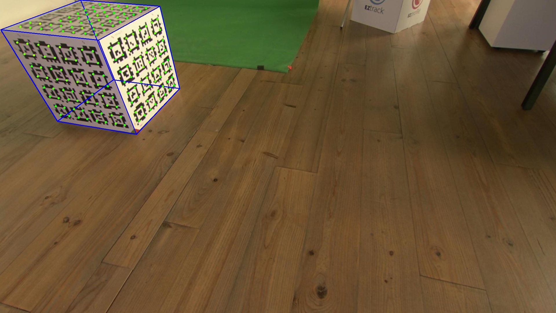 EZlineup fails to reproject the perspective of the virtual cube on the real cube. Looking at the Visual Pose Estimation, we see that even before introducting the tracking data, the reprojection fails.