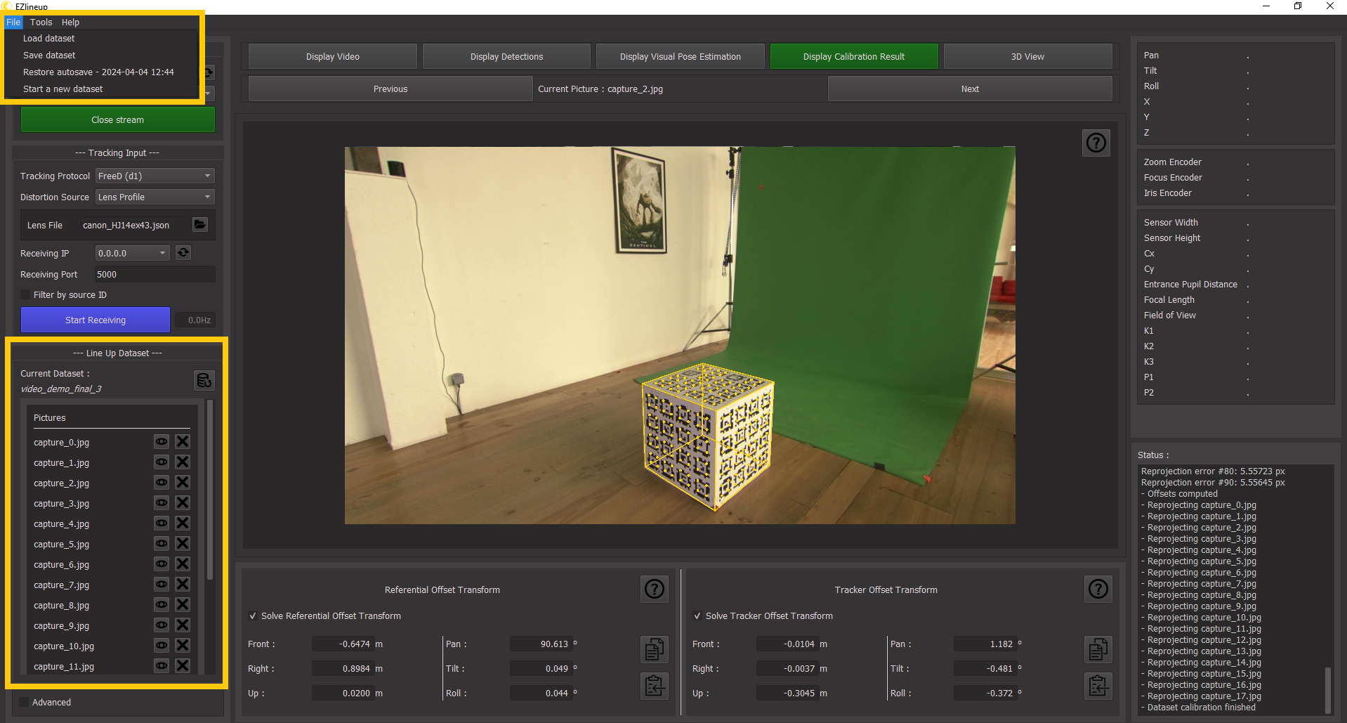 EZlineup uses datasets to store the pictures and associated tracking data, along with some other informations like previously computed offsets.
