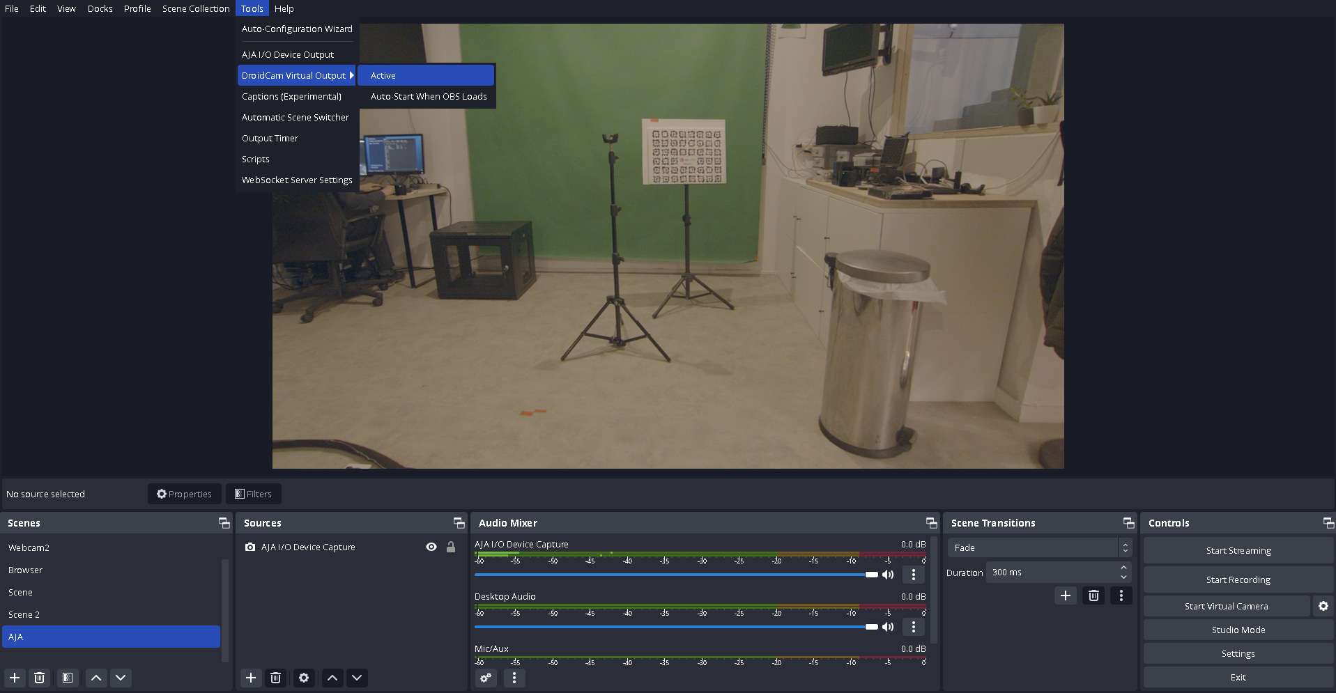 In Tools/DroidCam Virtual Output, make press active: