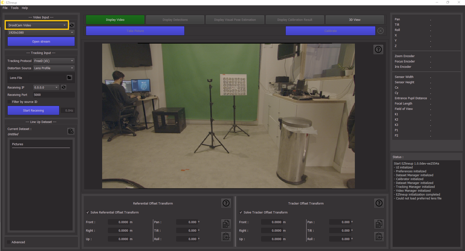 Open EZlineup. If you have no other video source plugged into the computer it should choose the DroidCam camera by default, otherwise press the refresh button and select "DroidCam Video" in the box on the top left.
