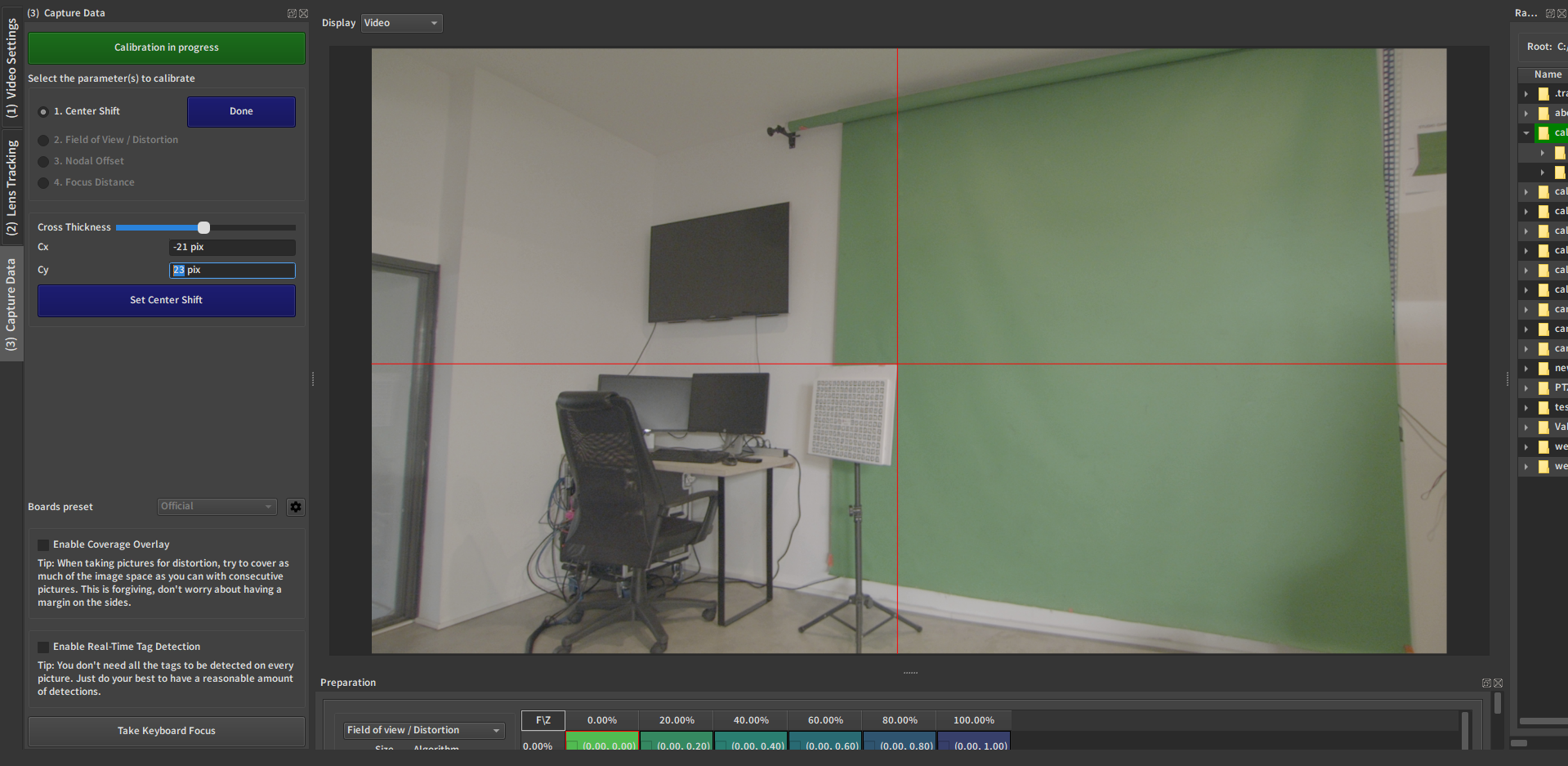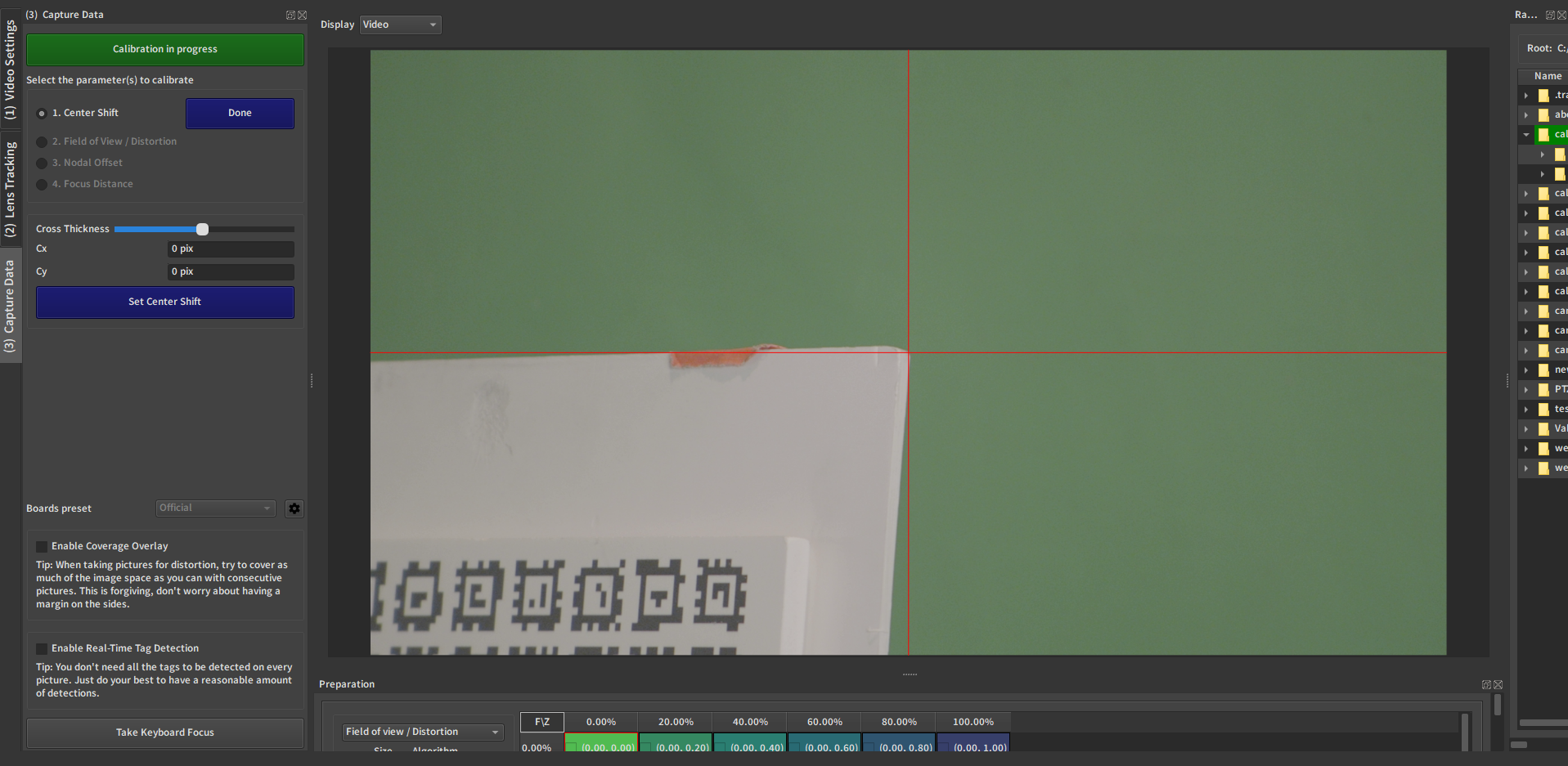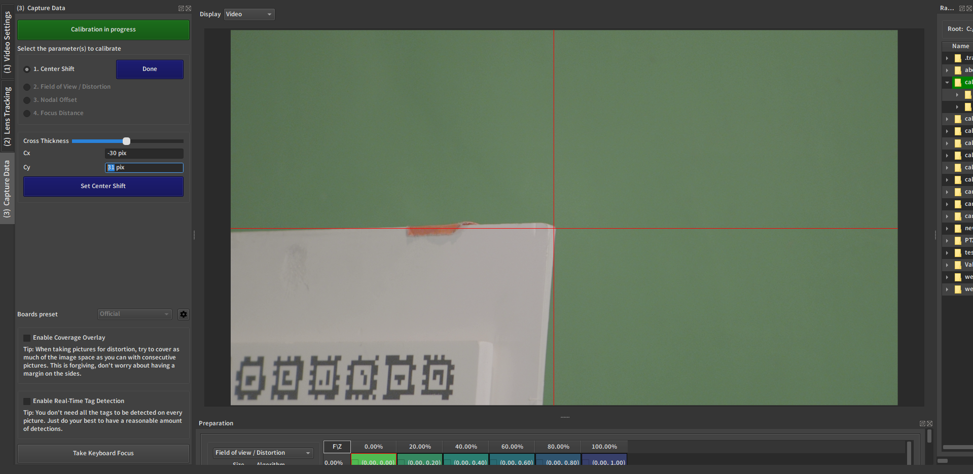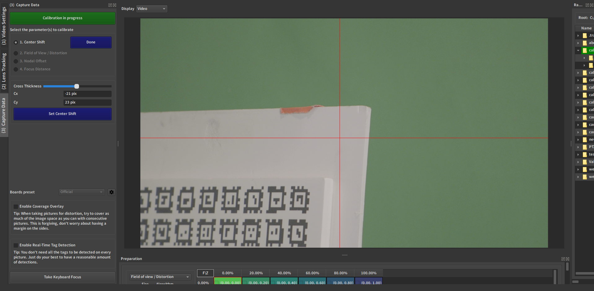 If you are calibrating a prime lens, skip this step and don't press the Set Center Shift button. In this case the center shift will be estimated after, using distortion.