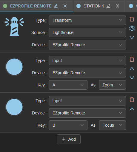 Do this again to have a second input. Make sure the device is the tracker (or controller) you intend on using. Set one of the inputs as button A and the other as button B. One of them has to be mapped to Zoom and the other to Focus.