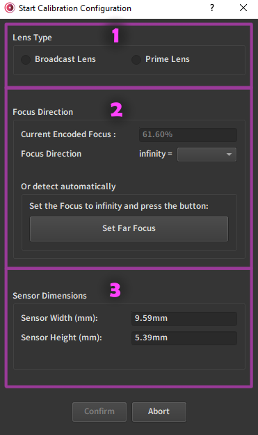 after all mendatory information has been filled out, the Confirm button will unlock. Press it to effectively start the calibration.