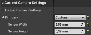 - Add a Cine Camera Actor in your scene. Set the Filmback > Sensor Width and Sensor Height to the value entered in the sensor width and sensor height in the lens profile.