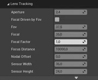 - Nodal Offset : The nodal offset of the optical system, from the sensor, in cm. This settings adds a relative offset on the X axis to the Cine Camera Actor
