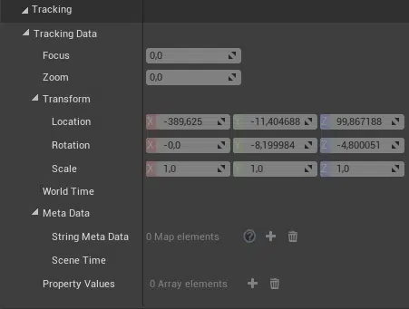 The LiveLink Tracking Transform Controller behave like a Live Link Controller driven by a Live Link Transform Role , with the normalized Zoom and Focus values accessible by blueprints. It is a basic controller letting the user creates its custom implementations.