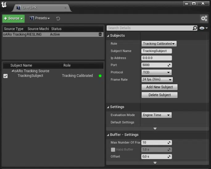 - Transform Delay : Synchronize the data with the engine by delaying the data received by this number of frames.