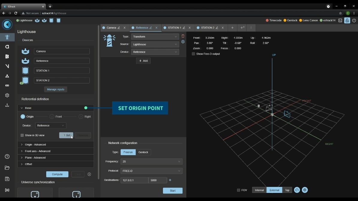 FreeD / TCD (Eztrack proprietary protocol) embedding camera position + lens intrisic data