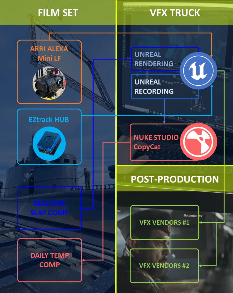 The primary render engine as Unreal Engine was operating on the truck being itself hundred meters away from the shooting stage.