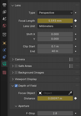 Here we just copied the 2.8 f-stops from the lens barrel and left the default circular bokeh, since it gave good enough results. Sometimes you may have to change the f-stops number a bit compared to the real value to match the blur visually: