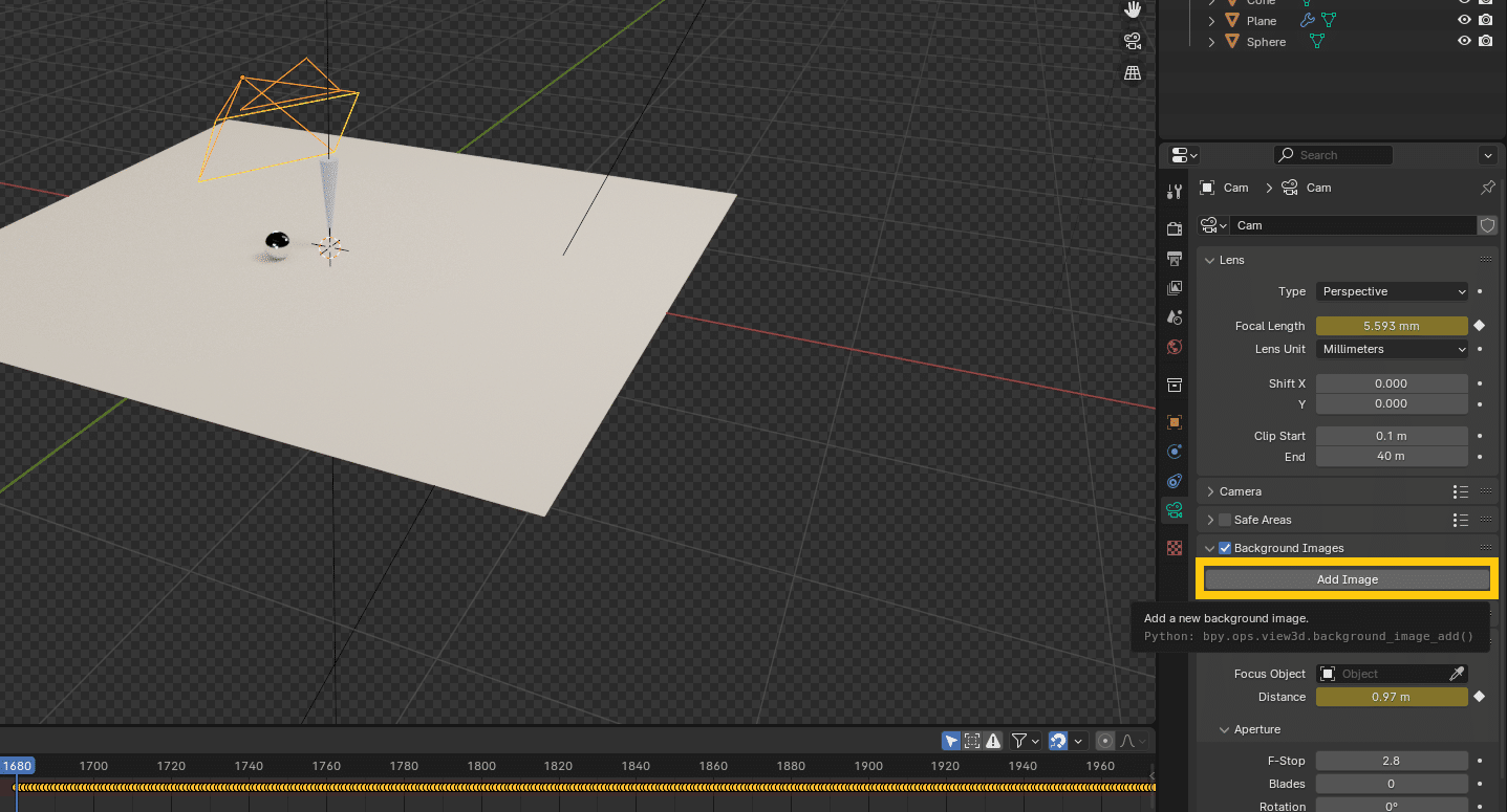 With the camera selected, in the camera settings panel, check “Background Images” and press “Add Image”: