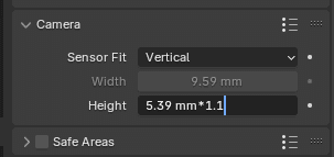 Blender does not handle overscan natively, so we must create it ourselves by increasing both the render resolution and the sensor size of the camera. Scaling the reference footage according to overscan after undistorting will allow us to directly put it as background in the camera bigger sensor without worrying about it later.