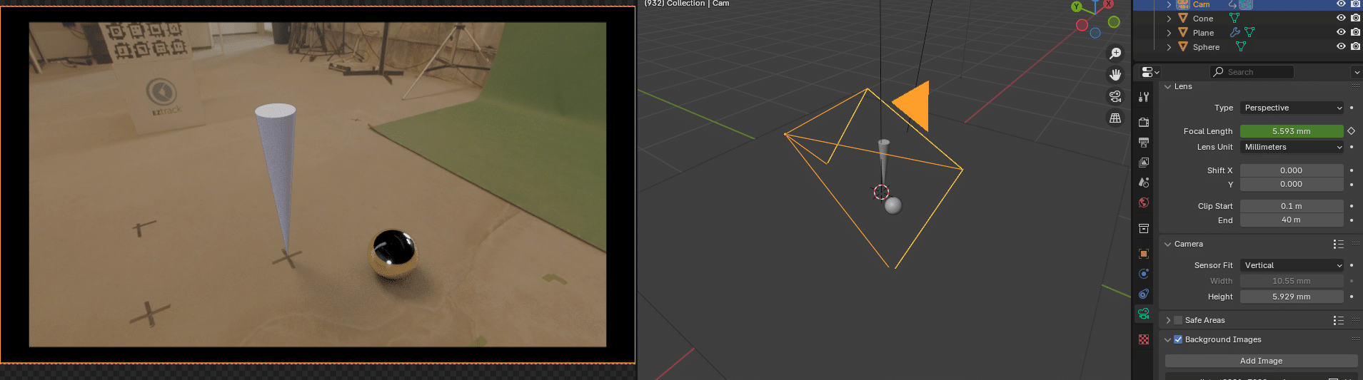 Already this seems to line up quite nicely, but there is still an offset to take care of. Remember how we added overscan on the undistorted plate ? We need to add it to the camera sensor size as well. For now the camera sensor is the exact size, as configured in the tracking system, but we need to scale it by 1.1 here to match the overscan: